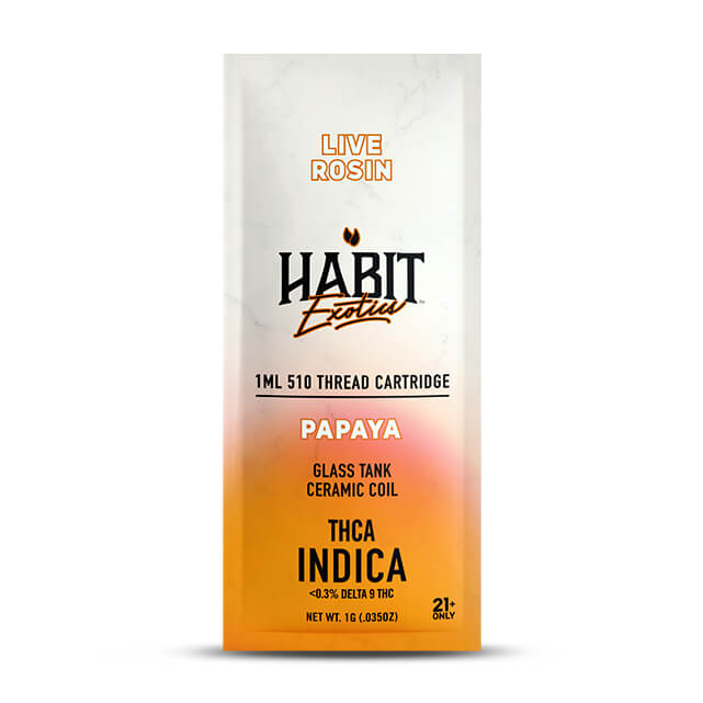 The 1G THCA Live Rosin Exotic Cartridge – Papaya (Indica) offers full-potency THCA in every puff. Using solventless live rosin, this cartridge delivers a clean, smooth hit. The glass tank ensures purity, while the ceramic coil gives you consistent, even hits from start to finish.