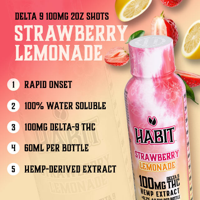 Habit High Spectrum Hemp Shots are made with extract derived from USA grown hemp. Habit formulates each batch to ensure the maximum amount of THC remains in the product while staying well within the federal legal limits.