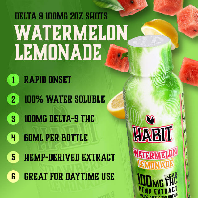 Habit High Spectrum Hemp Shots are made with extract derived from USA grown hemp. Habit formulates each batch to ensure the maximum amount of THC remains in the product while staying well within the federal legal limits.