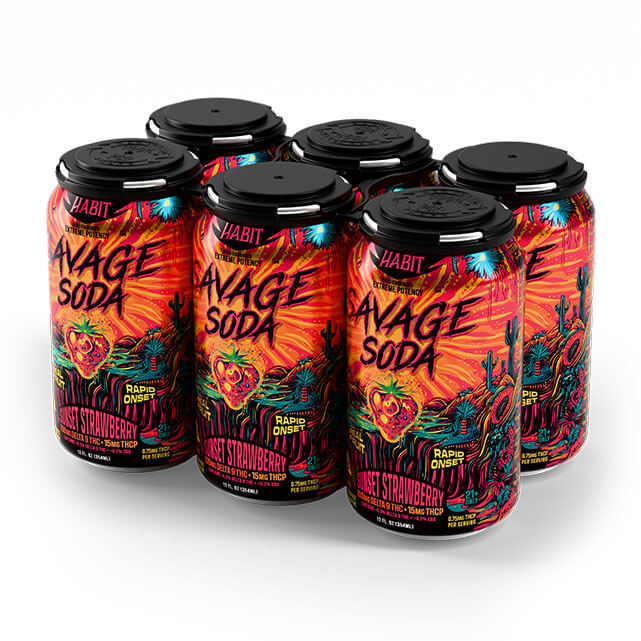 The Habit Savage Soda – Sunset Strawberry delivers flavor and firepower in every sip. With nano Delta-9 THC, THCP, and a rush of strawberry citrus taste, it’s built for bold experiences